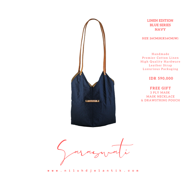 Saraswati Origami Tote Bag - Sunny Blue Line
