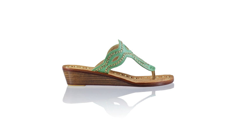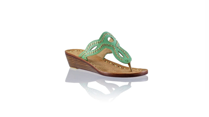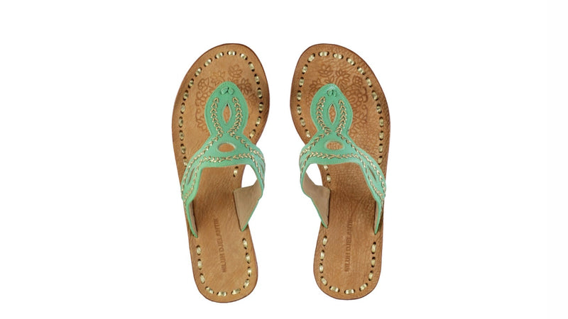 Sole & Upper sole  : Wooden Sole covered in Leather, Stamped upper sole with gold leather details