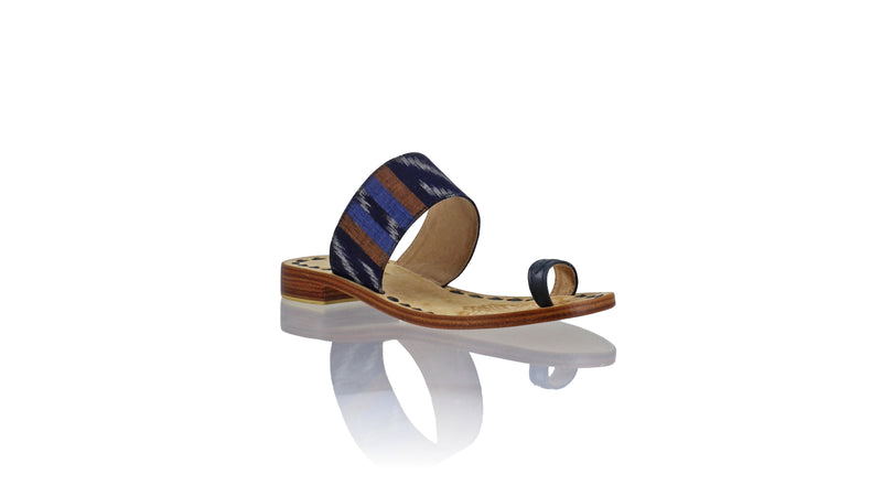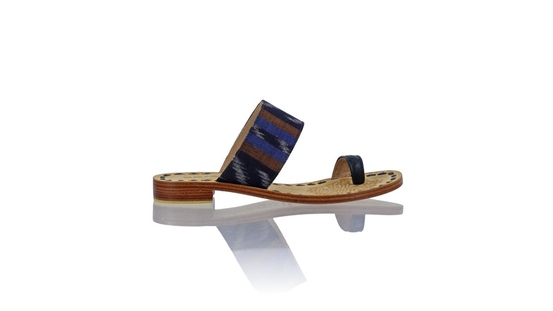 Experience luxury and art with the Arini 20mm Flat. Handcrafted with full leather sole and adorned with endek fabric from Klungkung, Bali. Indulge in the exclusive beauty of this Black Leather and Black Endek design.