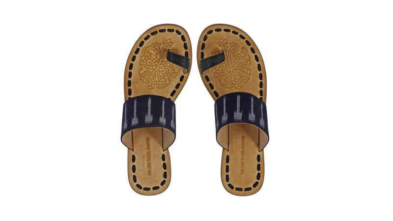 Experience luxury and art with the Arini 20mm Flat. Handcrafted with full leather sole and adorned with endek fabric from Klungkung, Bali. Indulge in the exclusive beauty of this Black Leather and Black Endek design.