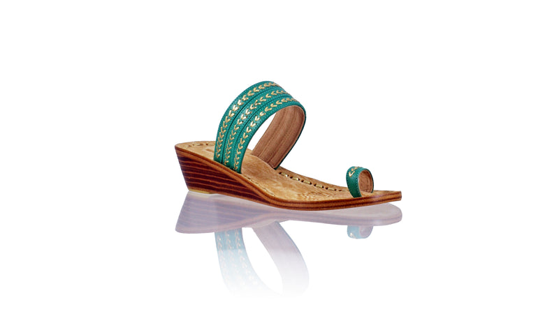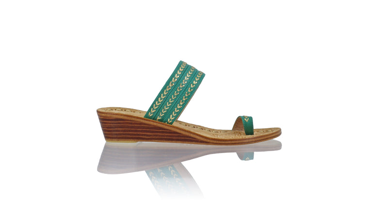 Sole & Upper sole  : Wooden Sole covered in Leather, Stamped upper sole with gold leather details