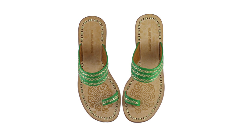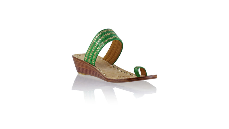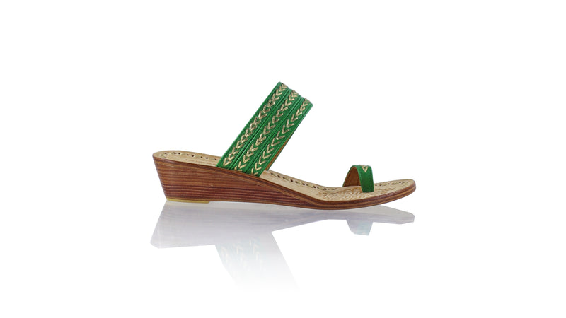 Sole & Upper sole  : Wooden Sole covered in Leather, Stamped upper sole with gold leather details