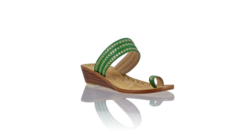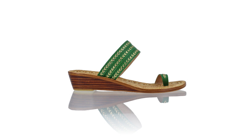 Sole & Upper sole  : Wooden Sole covered in Leather, Stamped upper sole with gold leather details