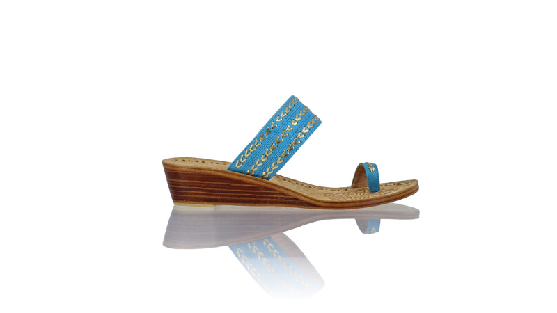 Sole & Upper sole : Wooden Sole covered in Leather, Stamped upper sole with gold leather details