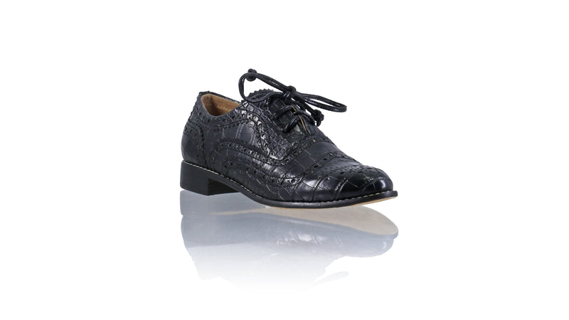 Indulge in luxury with the Pedro 25mm Black (faux) Croco. These flat laceup shoes are 100% handcrafted in Bali, adding an elegant touch to any outfit. The faux leather material provides both style and comfort, making them a perfect addition to your wardrobe.