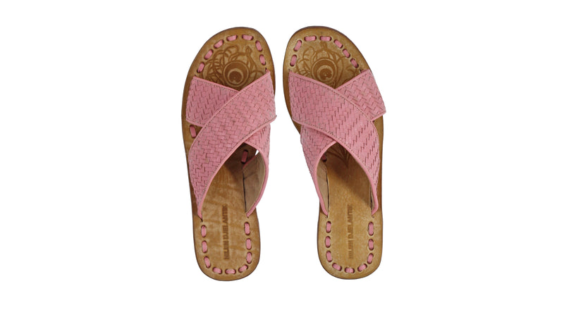 These sandals are made of small leather strips hand cut and woven together and then stiched on suede lining..