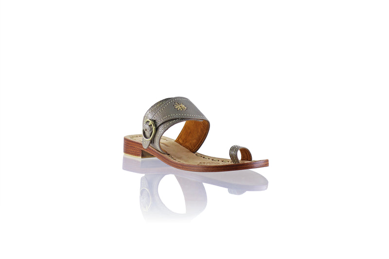 The upper is made of double stiched leather (with a soft micro suede inner linning).  The beautiful fixed metal buckle .