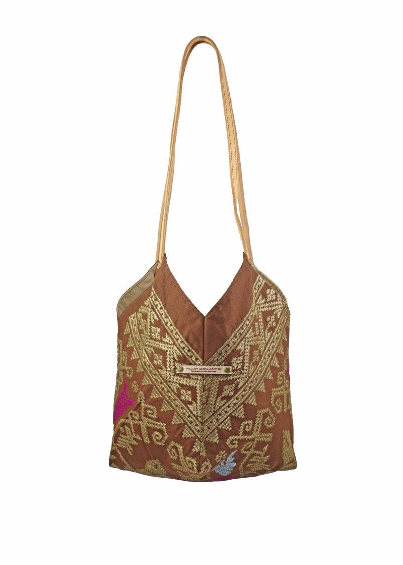 The metallic threads stand out against the background cloth to create a shimmering effect