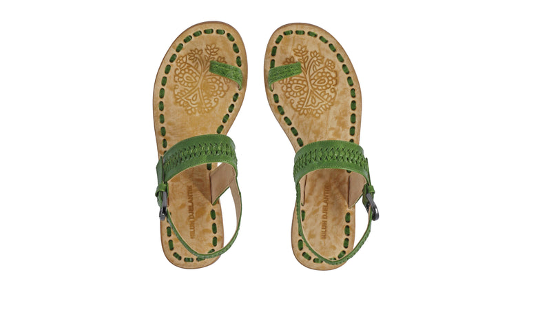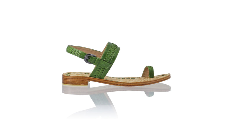 Sigi is Flat sandal with a round front. Super comfy and light on your feet. It has a strap to hold your feet secured along a toe loop. Your feet are hold by the bigger loop of detailed breaded Leather.
