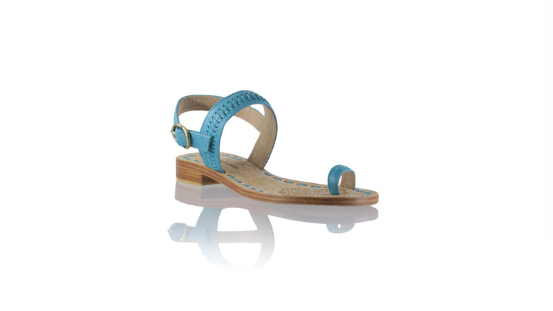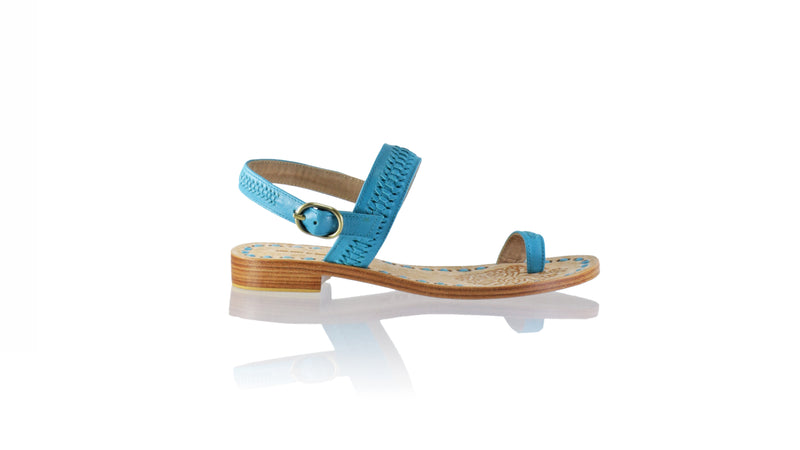 Sigi is Flat sandalwith a round front. Super comfy and light on your feet. It has a strap to hold your feet secured along a toe loop. Your feet are hold by the bigger loop of detailed breaded Leather.